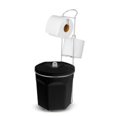 Suporte Cromado Porta Papel Higiênico Duplo c/ Lixeira - Cód 05250