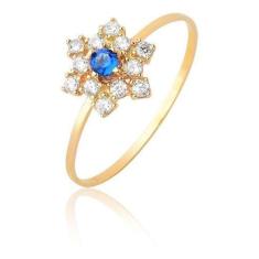 Anel Chuveiro Pedra Azul Safira Azul Ouro Puro 10k As509 - Maehler Joi