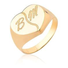 Anel Coração Letras Iniciais Personalizado Ouro 18k A502 - Maehler Joi