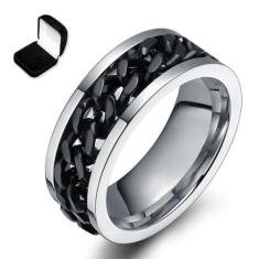 Anel Corrente Giratória Aço Inox E Ródio - Judith Joias