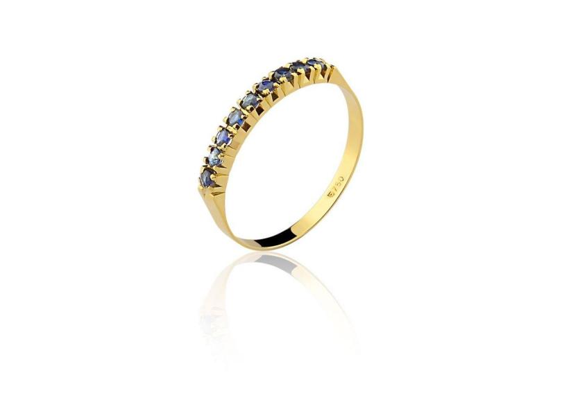 Anel Ouro 18K Meia Aliança Safira Azul Natural Ouro 14