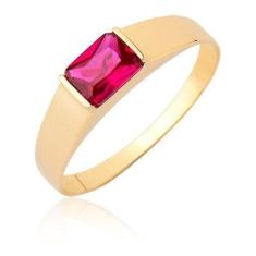 Anel Pedra Vermelha Masculino Em Ouro 10k Maciço A155 - Maehler Joias