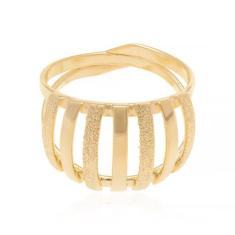 Anel Rommanel Banhado Ouro Vazado Com Filetes Lisos E Trabalhados 511044
