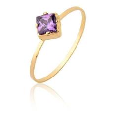 Anel Solitário Pedra Natural Ametista Em Ouro Puro 10k As505 - Maehler