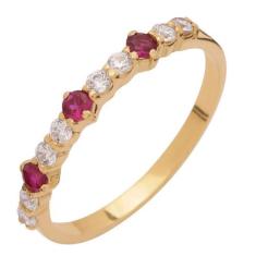 Meia Aliança de Ouro 18k com Zircônia Vermelha - Meu Anel