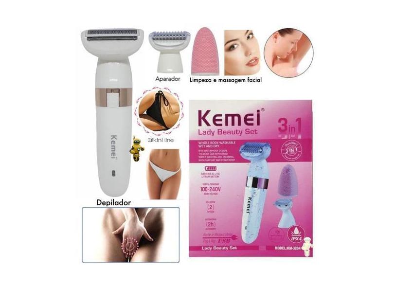 Aparador Elétrico Feminino 3 Funções Km-3204 Lady Shaver Facial Clean