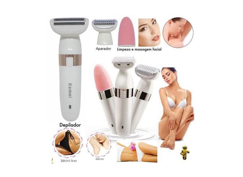 Aparelho Depilador 3Em1 Aparador, Shaver, Massageador Facial, Kemei Km