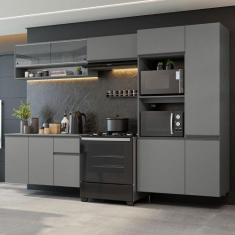 Armário de Cozinha Completa Suspenso 300cm Cinza Nice Madesa 07