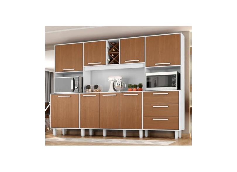 Armario para Cozinha Mdp 8 Portas 3 Gavetas Branco/Cinamomo