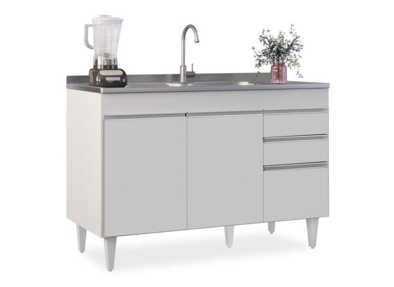 Balcão Gabinete 120cm 3 Portas 2 Gavetas Michigan Branco - Lumil