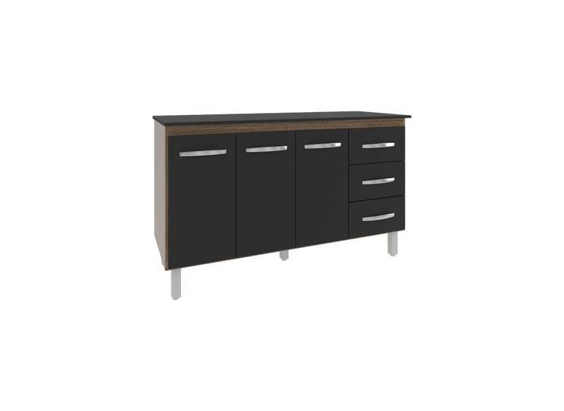 Balcão Gabinete Armário Cozinha Carine Savana Preto com Tampo Tampão 1