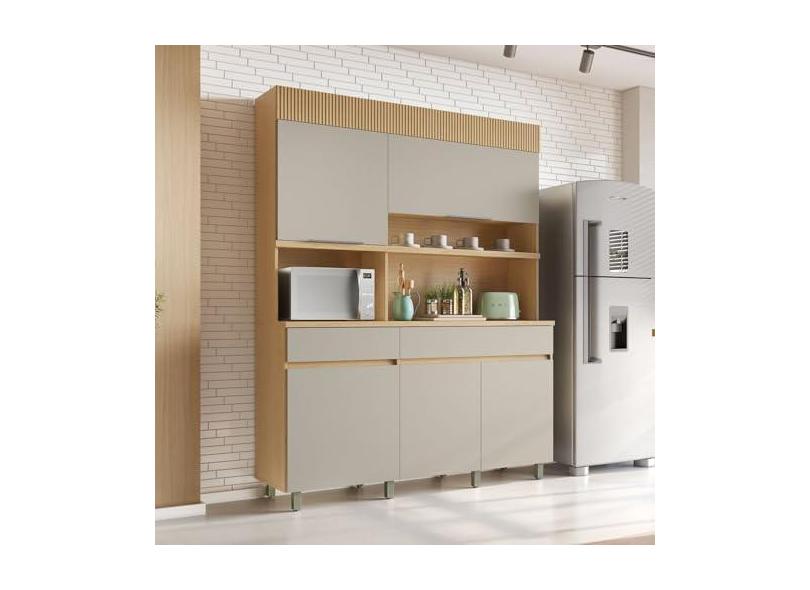 Cozinha Compacta 5 Portas 2 Gavetas Realeza 160cm 100% Mdf Carvalho/Greige