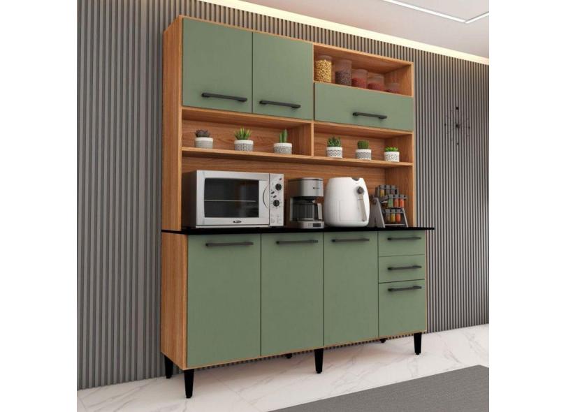 Cozinha Compacta Vitória 7 Portas 2 Gavetas Freijó/Verde - Panorama Móveis