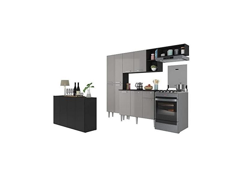 Cozinha Completa c/Buffet/aparador Paris Multimóveis Mp2043 Preta/lacca Fumê