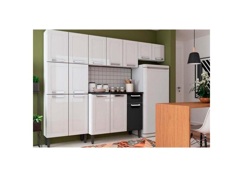 Cozinha Completa Múltipla 4pçs (2 Armários + 1 Balcão + 1 Paneleiro) C4P72 Branco/Preto - Bertolini