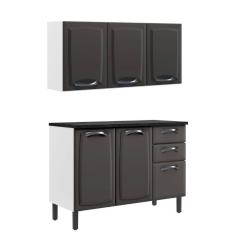 Cozinha Modulada 2 Peças Itatiaia Balcão 3 Portas e Armário Aéreo 3 Portas Aço New Premium Grafite