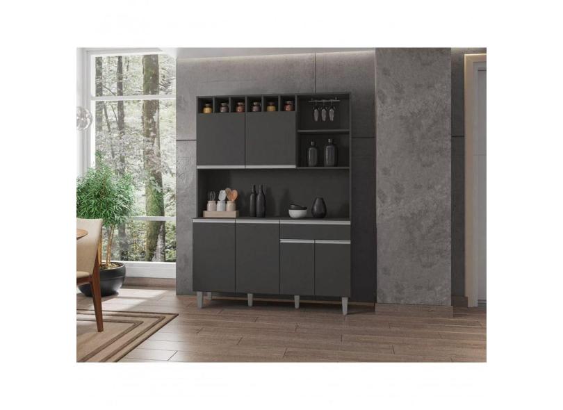 Kit Armario Cozinha Compacta Alice 130cm 6 Portas Cor Cinza AJL