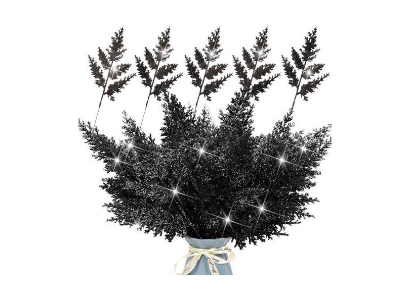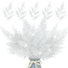 Conjunto de 24 agulhas de pinheiro artificial com glitter, ramos de 31,5 cm, decoração de árvore de Natal brilhante, sprays, folhas de cedro, galhos, arranjos de flores de inverno, decoração de Natal