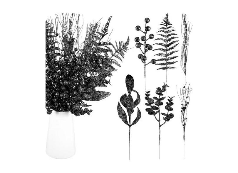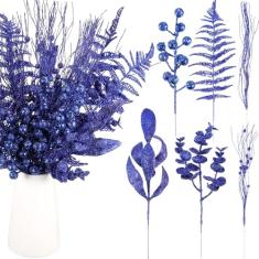 Syhood 100 palhetas sortidas de árvore de Natal com glitter, galhos artificiais de eucalipto, bagas, caule, folha de pinheiro, galho brilhante para decoração de árvore de Natal, festa de casamento,