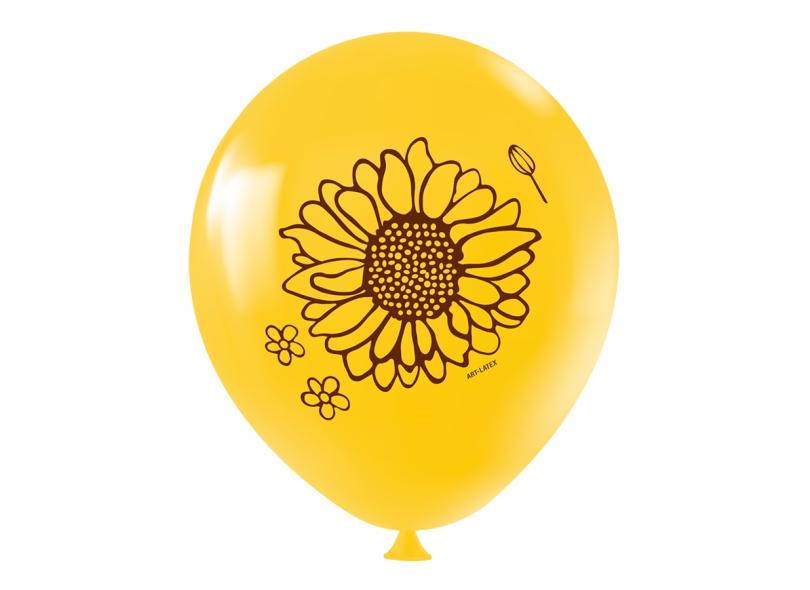 Balão de Festa Redondo Profissional Látex Decorado 11 28cm - Girassol - 25 Unidades - Art-Latex