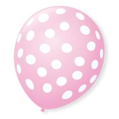 Balões São Roque Decorado 9 Tema Bolinhas Rosa Baby E Branco 25 Unidades