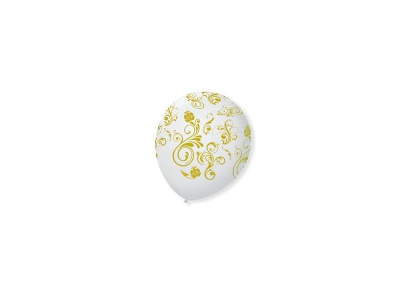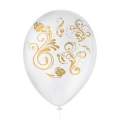 Bexiga Balões Tema Nº 9 Arabesco Branco e Dourado - 25 Unid