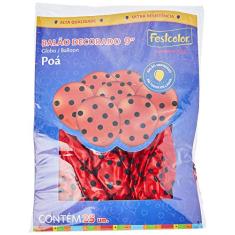 Festcolor 105921 - Balão Decorado N.09 Poa Vermelho/Preto - Pacote com 25 Unidades , Multicor