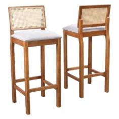 2 Banquetas Helena em Madeira Maciça e Encosto com Tela Natural Facilita Decor