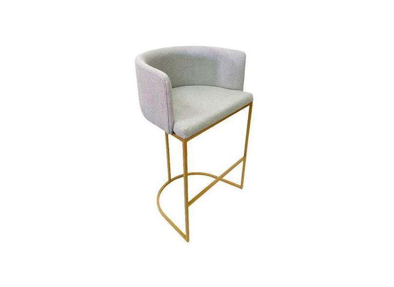 Banqueta Alta Decorativa Luxo Zoe Tecido Bouclé Base De Metal Dourado