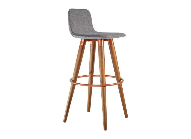 Banqueta Alta Luxo Aço Cobre Linho Cinza Cinza