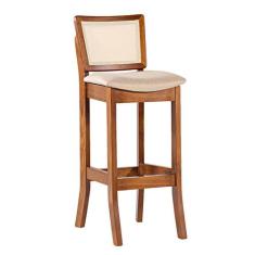Banqueta Alta Portugal em Madeira com Encosto em Rattan Estofada Linho Bege M58 RMI