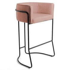 Banqueta Decorativa Base Aço Betina C-105 Linho Rosê - Domi