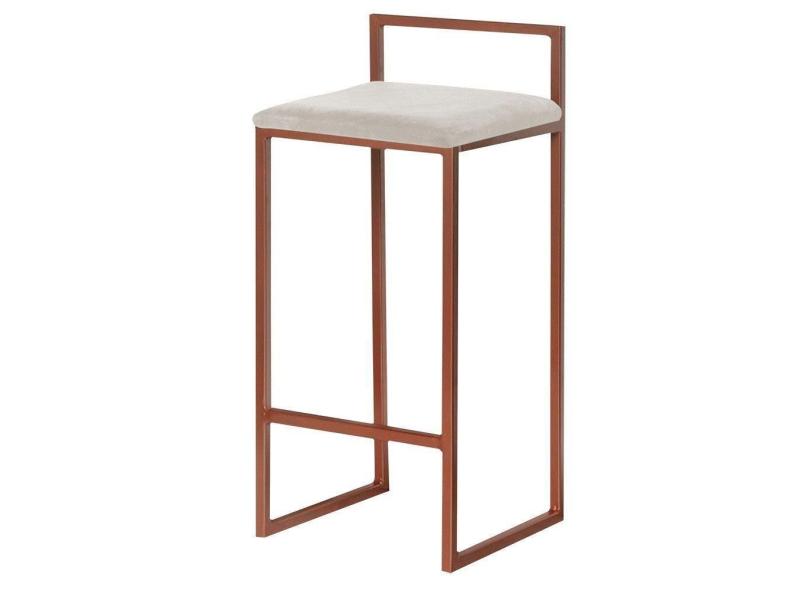 Banqueta Decorativa Jasmine Base Bronze Suede Bege