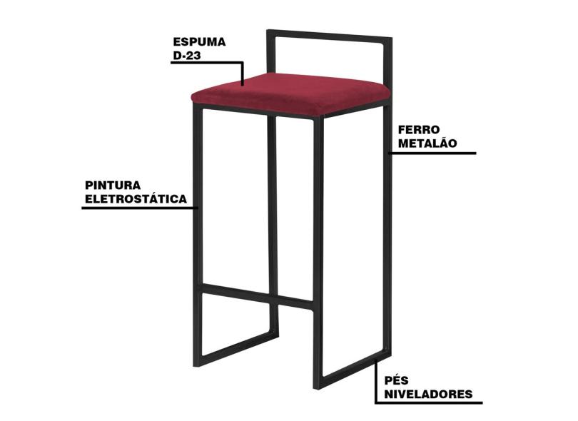 Banqueta Decorativa Selena Base Suede Bordô - Gran Belo