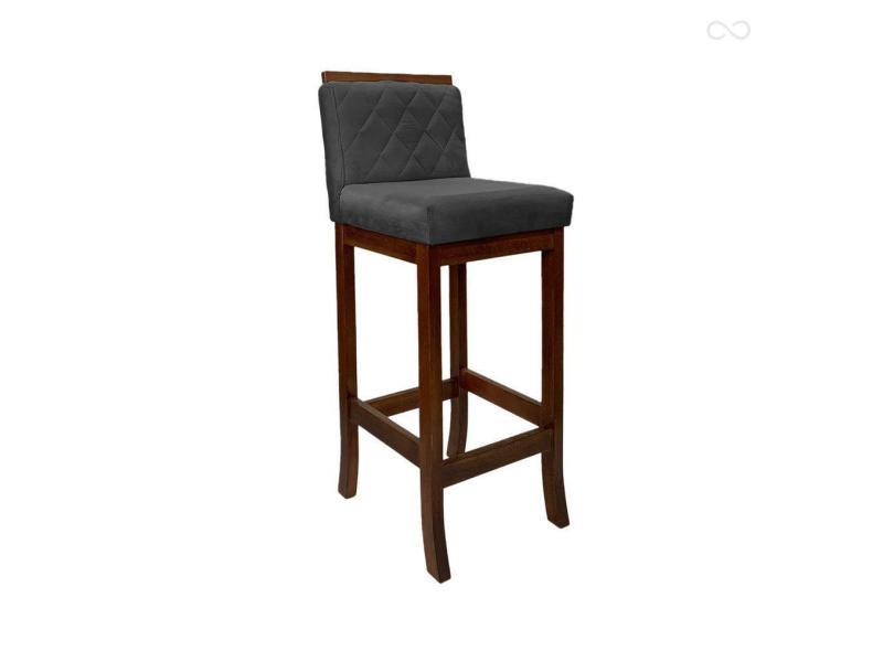 Banqueta Média em Madeira Castanho Nice Matelassê Suede Cinza CCS
