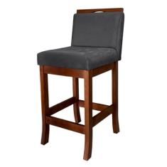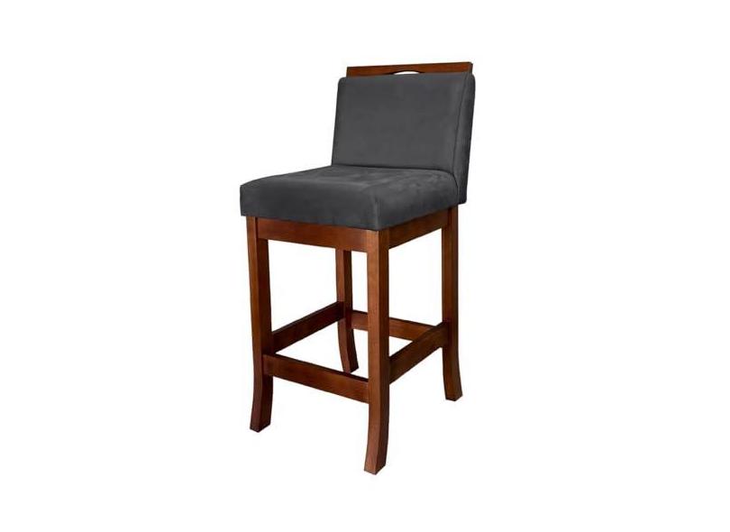 Banqueta Média Estofada para Bancada Turim Madeira Castanho Suede Cinza CCS