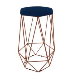 Banqueta Paris Aramada Base Bronze Suede Azul Marinho - Maitê Moda Cas
