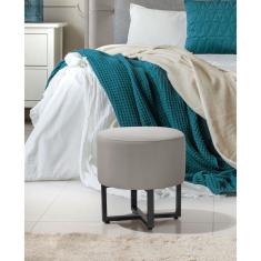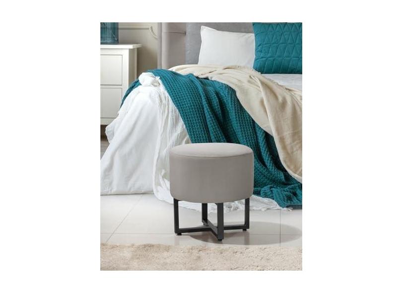Banqueta Redonda Tecido Veludo Cinza Com Pes de Ferro Estilo Industrial Preto