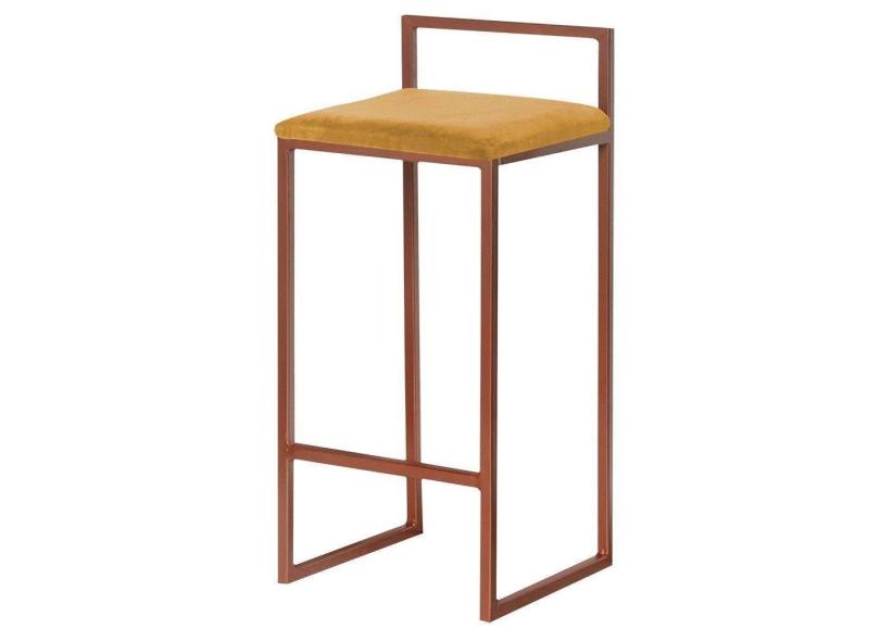Banqueta Selena Base Bronze Suede Mostarda Gran Belo