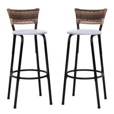 Conjunto 2 Banquetas Altas Estrutura Preta Encosto Junco Cappuccino 70