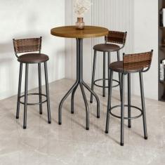 Conjunto Bistrô Bete Tampo Ripado Tradicional 70cm com 3 Banquetas Prata/Marrom