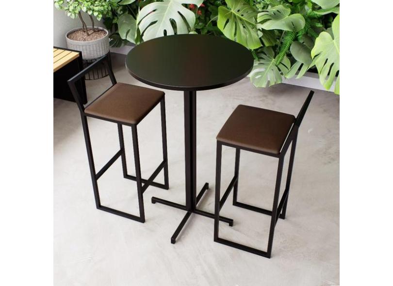 Conjunto Mesa Alta Bar Bistr Redonda Preta 2 Banquetas Confo
