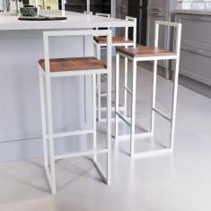 Jogo 4 Banqueta Alta Balcão Bistrô Industrial Branca Madeira Imbuia