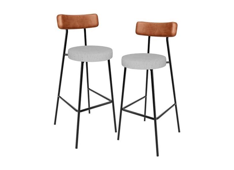 Kit 02 Banquetas Alta Cozinha Sala Jantar Aço Milão L02 Couríssimo Camel Linho Cinza - Lyam Decor
