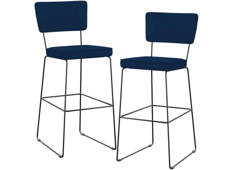 Kit 02 Banquetas Para Cozinha Sala De Jantar Base Em Aço Allana L02 Suede Azul Marinho