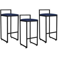 Kit 03 Banquetas Altas Para Cozinha Sala de Jantar Hanna L02 Preto Suede Preto - Lyam Decor