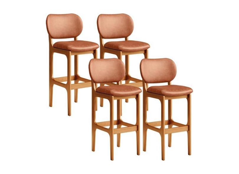 Kit 04 Banquetas Alta Para Cozinha Madeira Fixa Betta L02 Imbuia Sinté
