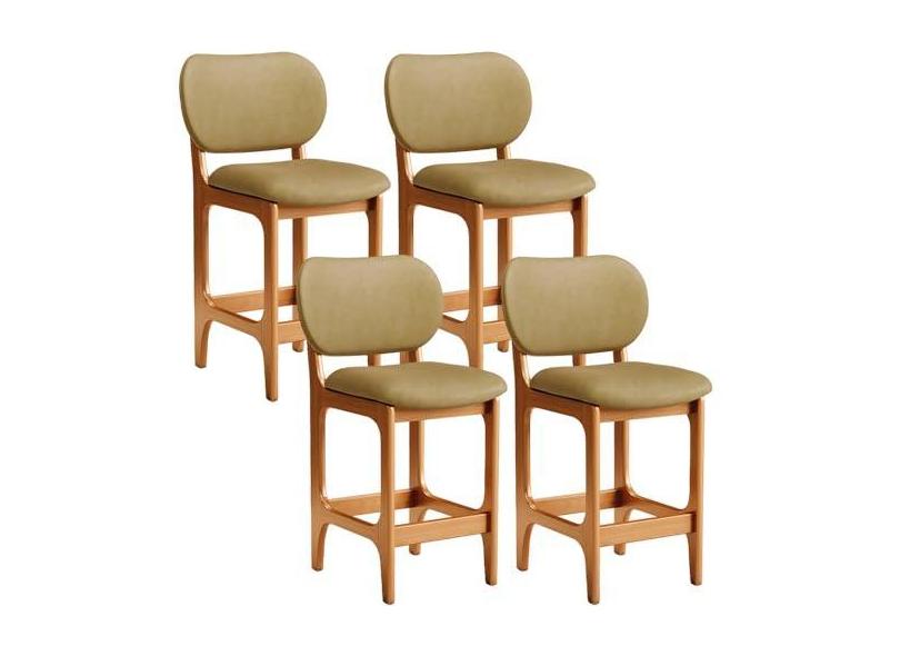 Kit 04 Banquetas Baixa Bar Cozinha E Sala De Jantar Fixa Betta L02 Imbuia Couríssimo Casco Fendi - Lyam Decor