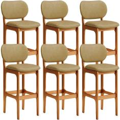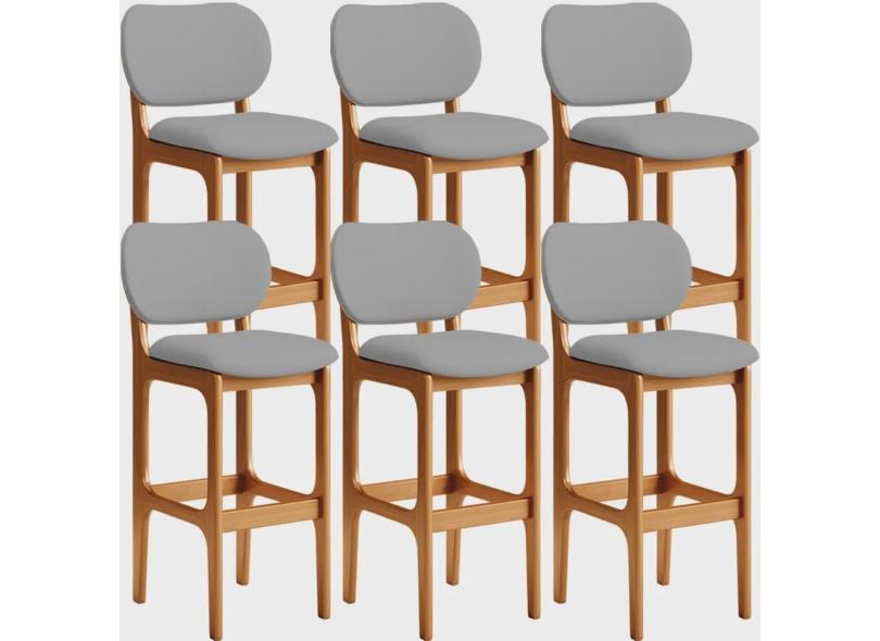 Kit 06 Banquetas Alta Para Cozinha Madeira Fixa Betta L02 Imbuia Facto Cinza - Lyam Decor