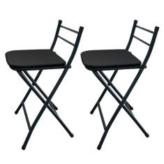 Kit 2 Banco banqueta baixa Dobravel com encosto Viena - WRM Metal, Pre